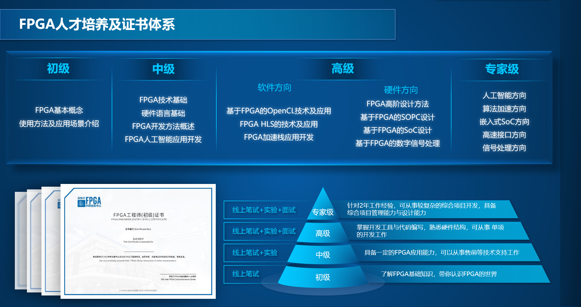 英特尔FPGA中国创新中心资深讲师徐栋玲,从4个方面为williamhill官方网站的同学展开讲解,分别是“芯时代与FPGA”、“如何学习FPGA技术”、“FPGA人才发展现状”、“英特尔FPGA中国创新中心”。徐老师从时代背景出发,为员工介绍了FPGA技术在各个领域的应用;又从技术角度出发,为员工深入讲解了如何学习FPGA技术;然后从国内FPGA人才发展现状入手,为员工分析了FPGA与人工智能方向的就业前景;最后,徐老师介绍了英特尔FPGA中国创新中心,使员工了解到创新中心的职能和FPGA人才培养体系。