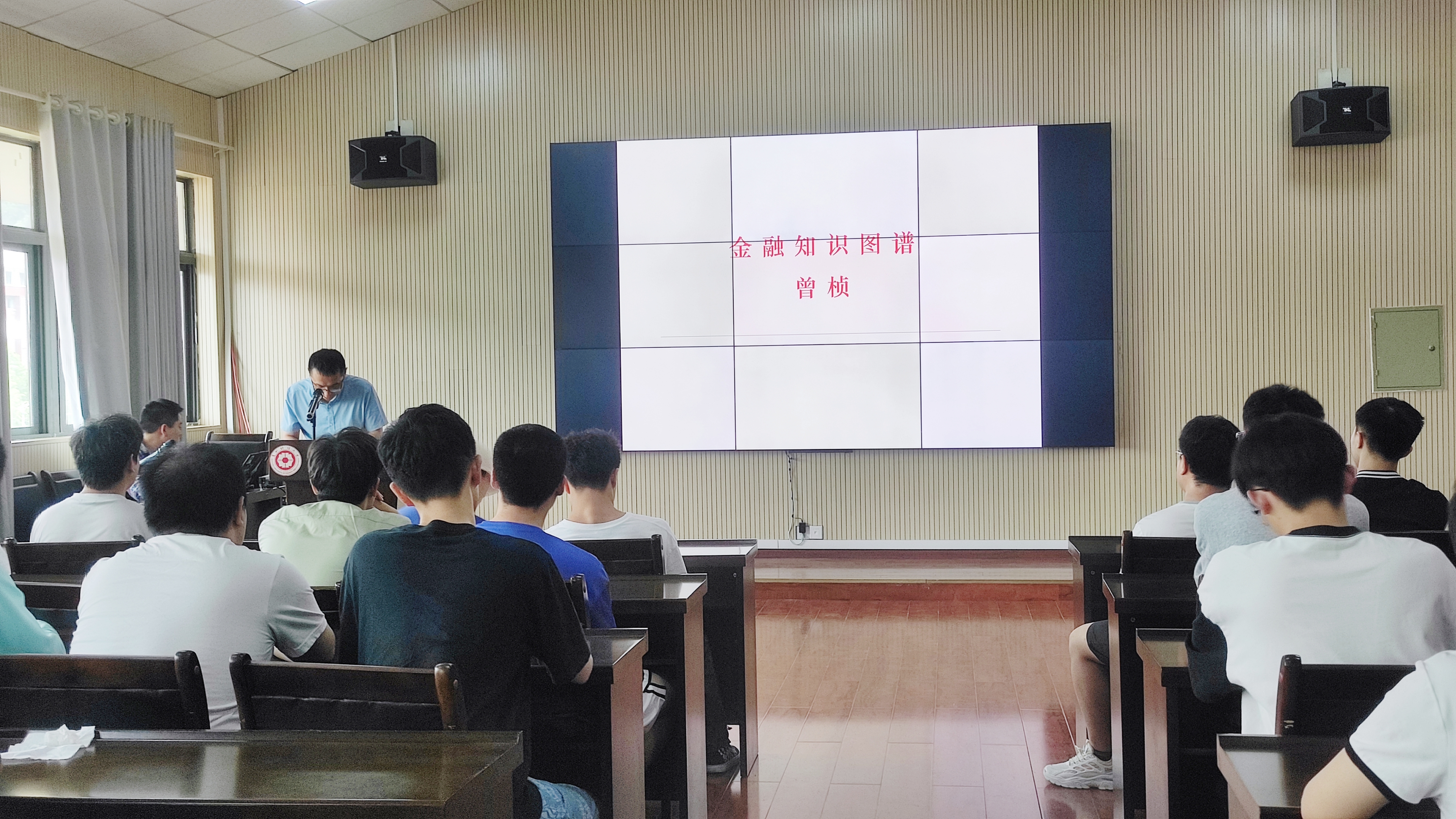 曾桢教授为同学们开展了名为“本体结合下的金融知识图谱建设”的讲座。他结合以往所参与国家自然科学重点研究项目,介绍金融本体金融知识图谱的建设以及相关的应用,以及protégé,sparql等基本原理的介绍。
