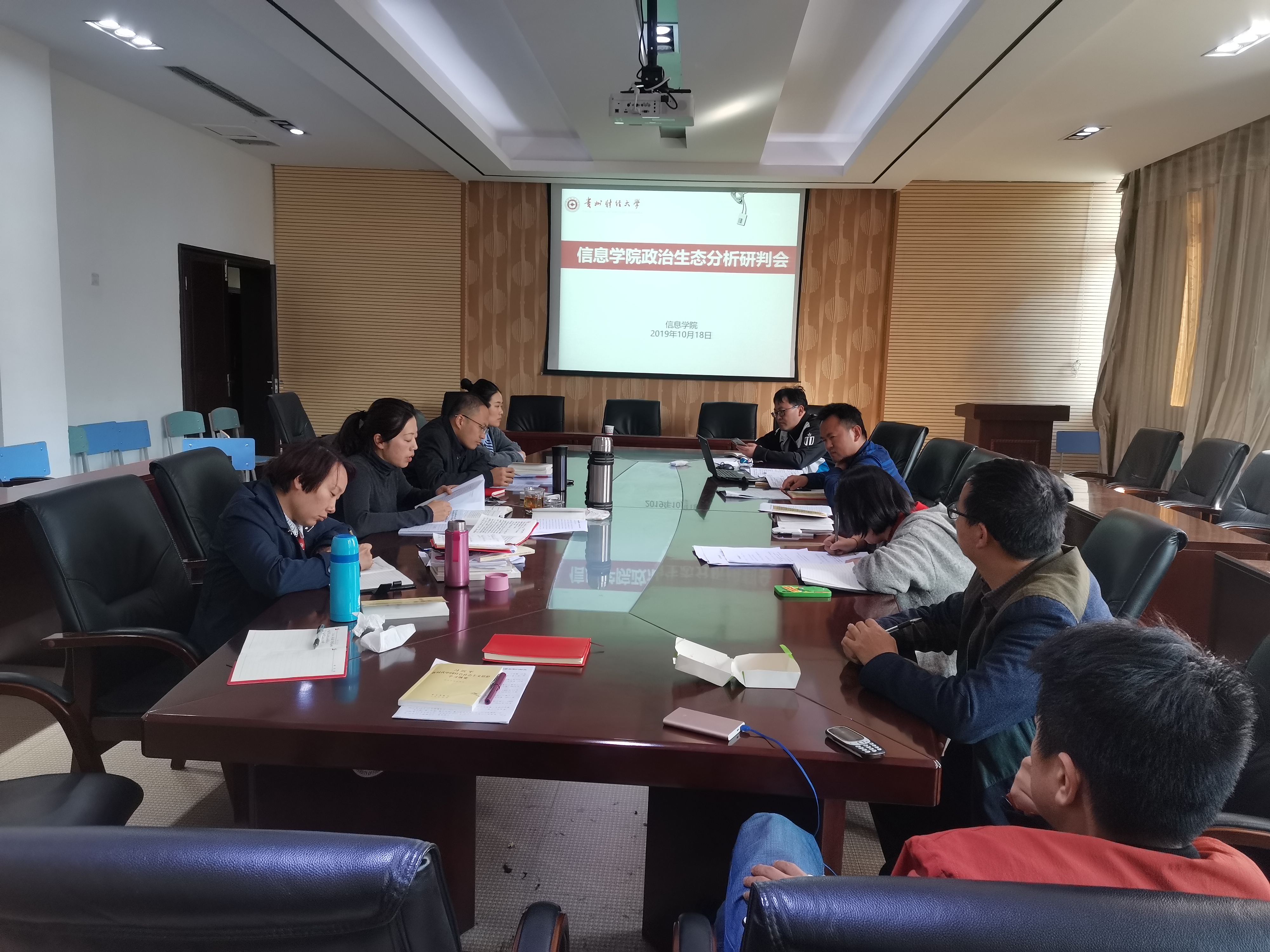 本网讯:(王游滨 图文报道)10月18日下午,williamhill官方网站在志学楼427召开2019年政治生态分析研判会。公司党委书记卿春,公司党委副书记何瑞,公司纪检委员、副经理陈琴,各系(科室)负责人参加会议。会议由卿春主持。