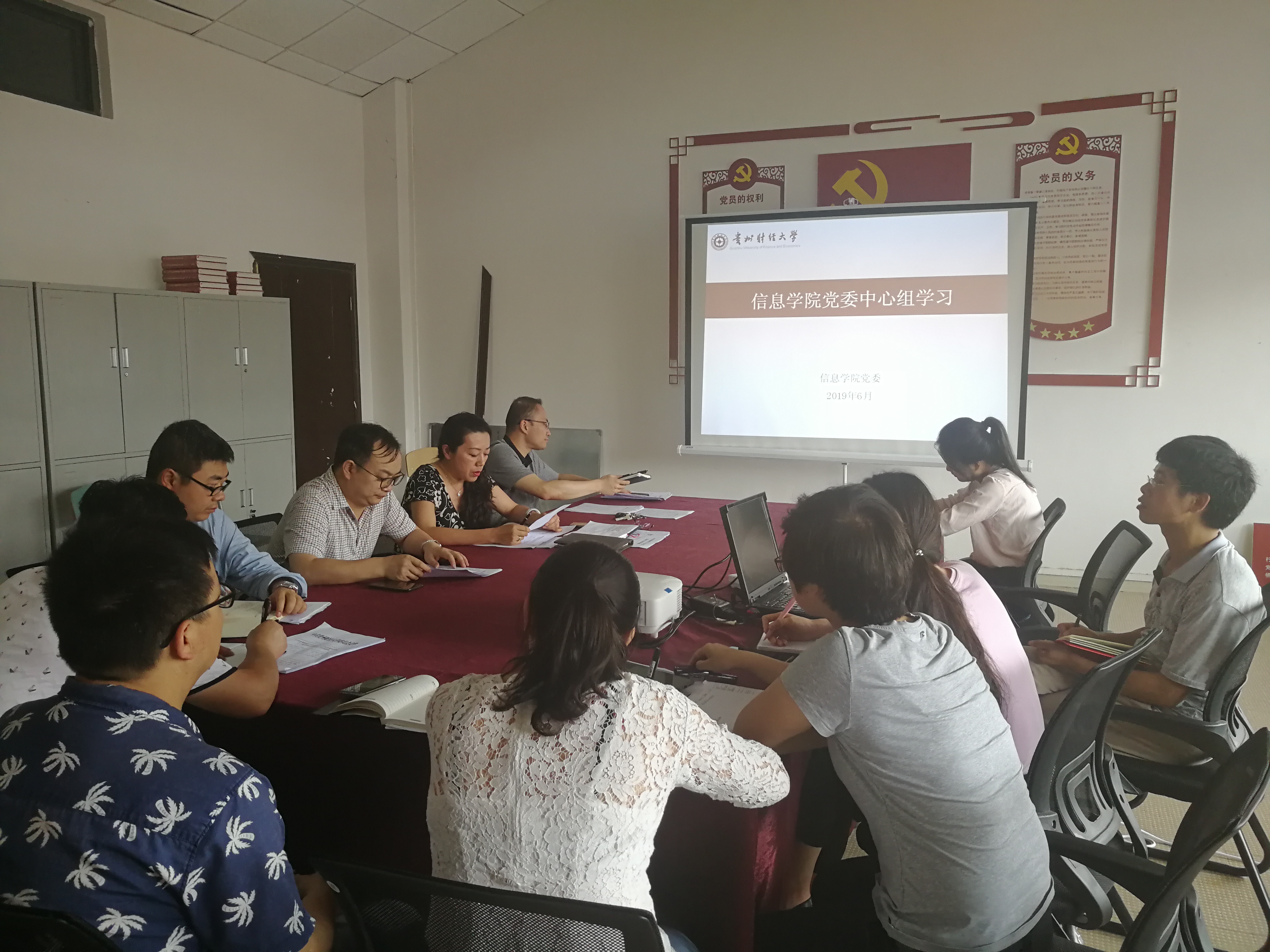 本网讯:(王游滨 图文报道)6月21日下午,信息公司党委理论学习中心组全体成员在志学楼505党员活动室举行本学期第四次学习。会议由公司党委书记卿春主持。