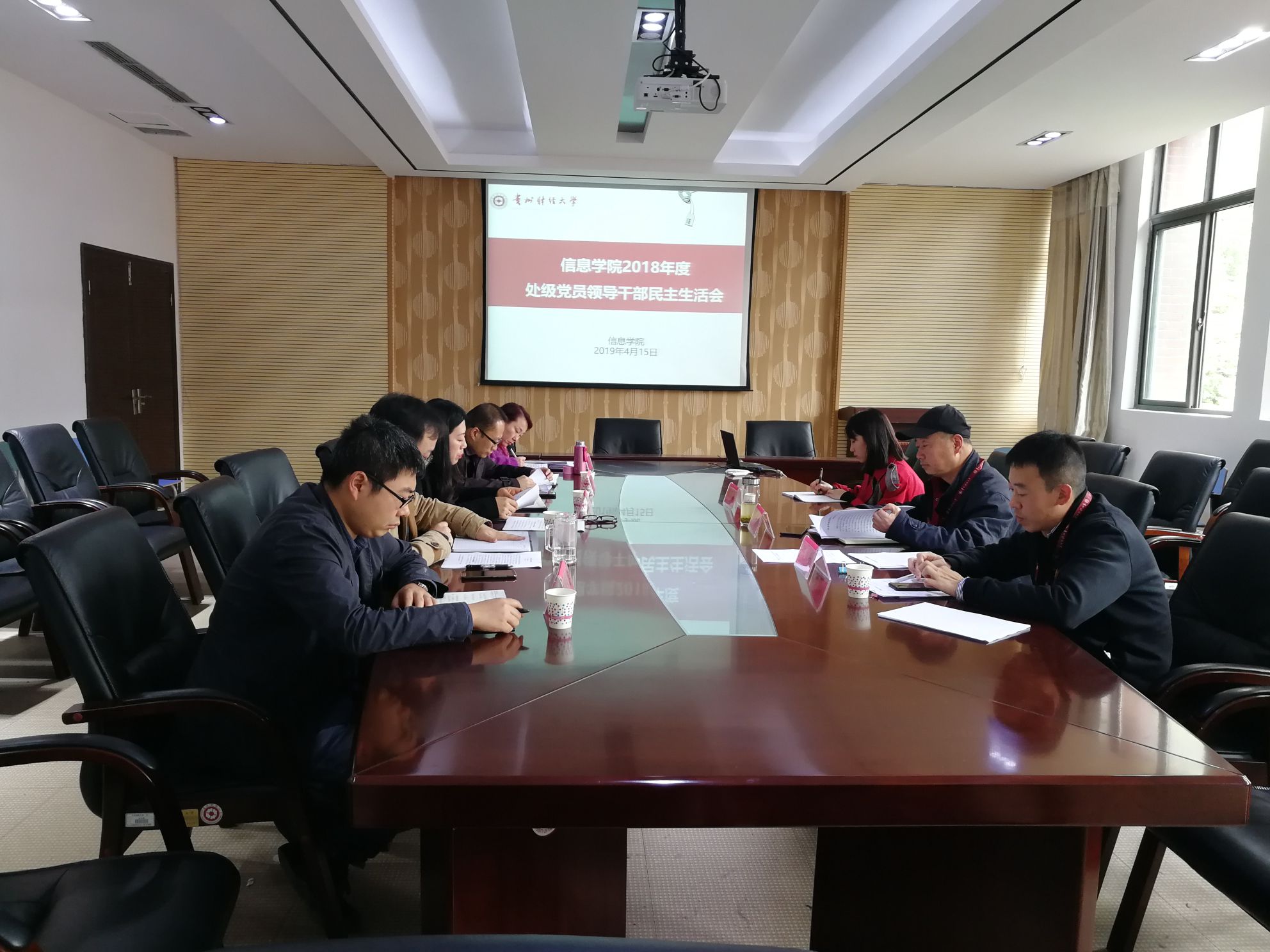 会上,卿春同志首先代表公司领导班子做信息公司党委2017年度处级党员干部民主生活会整改措施落实情况报告,并对公司2018年度处级党员干部民主生活会征求意见情况进行了汇报,卿春还代表公司班子对公司班子对照检查情况进行了报告。随后,卿春、邓明森、何瑞分别依次从思想政治、精神状态、工作作风等方面存在的问题及产生问题的原因、下一步整改措施进行了认真细致的查摆和分析,班子其他成员在该名同志对照检查完毕后一一对其提出批评意见,现场气氛严肃认真。