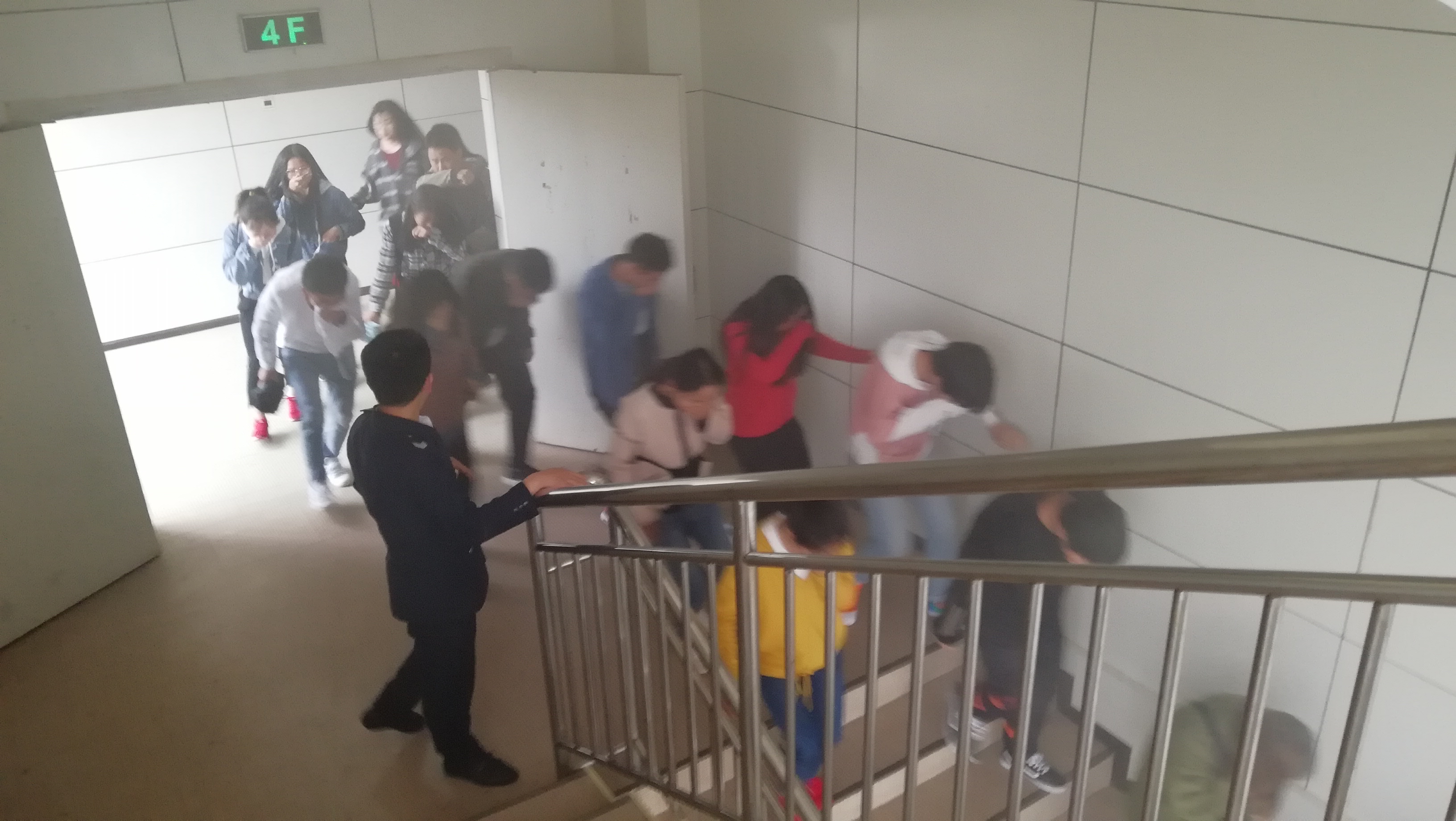 随后,在志学楼414教室对williamhill官方网站50余名员工代表开展了应急疏散逃生演练活动。在滚滚的浓烟中,万夏引导同学们用手、毛巾等捂住口鼻,以正确的逃生姿势向楼外逃生,在撤离过程中,同学们听从指挥、动作规范、疏散有序,达到了演练的预期目标。