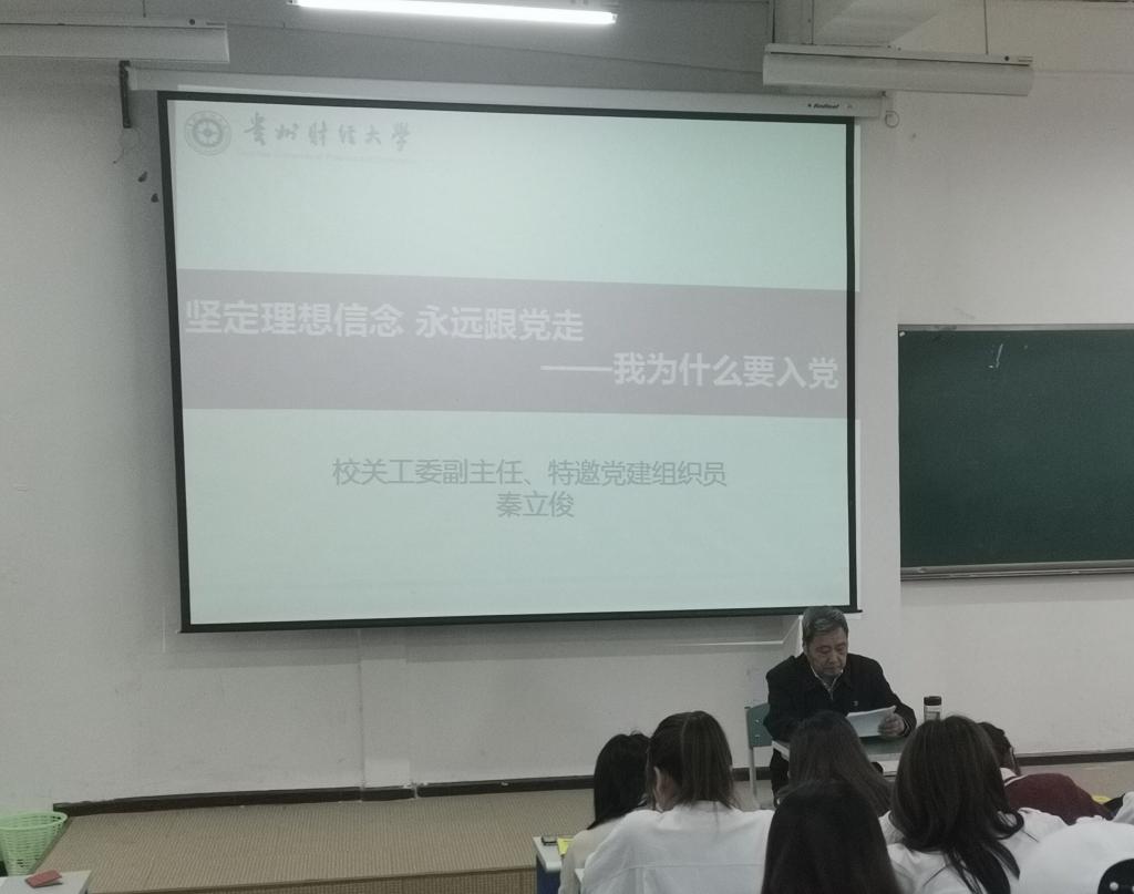 课上,秦立俊老师首先对各学员进行提问:“为何要入党?”进一步了解各学员的入党动机。并以自身的入党经历为例,向各学员讲述了自己在入党过程中的思想变化,让各学员坚定理想信念、端正入党动机,积极向党组织靠拢,做到思想上、行为上入党。秦立俊老师也阐述到十九大对我国的深刻影响,以及在建党一百周年的特殊时刻,各学员应加强党的理论知识学习,严格要求自己,争取早日成为一名中国共产党员。