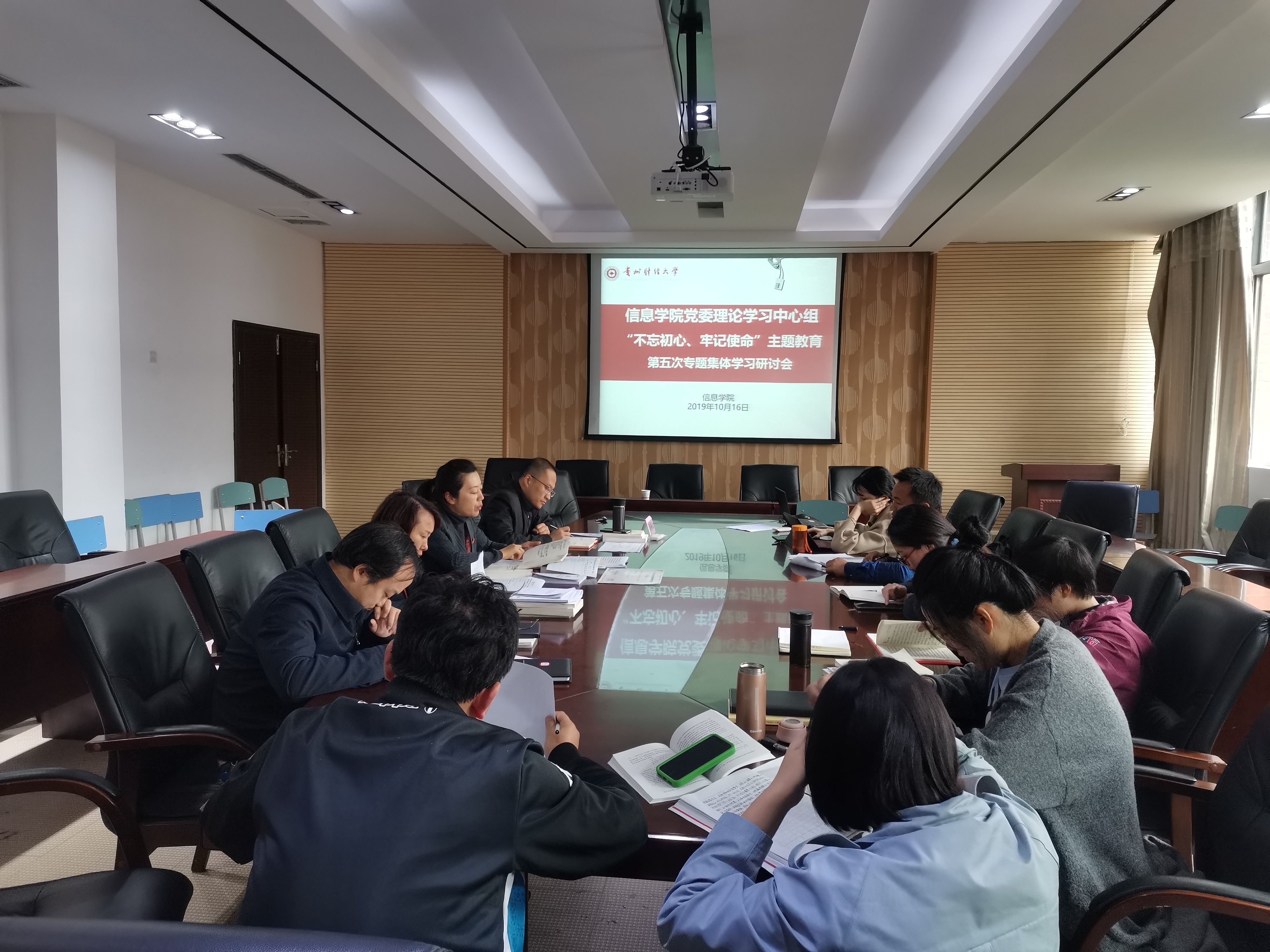 信息公司党委理论学习中心组于10月16日下午3点在志学楼427会议室召开“不忘初心、牢记使命”主题教育第三次专题集体学习研讨会,公司领导、各系(科室)负责人、党支部书记参会,卿春主持会议。