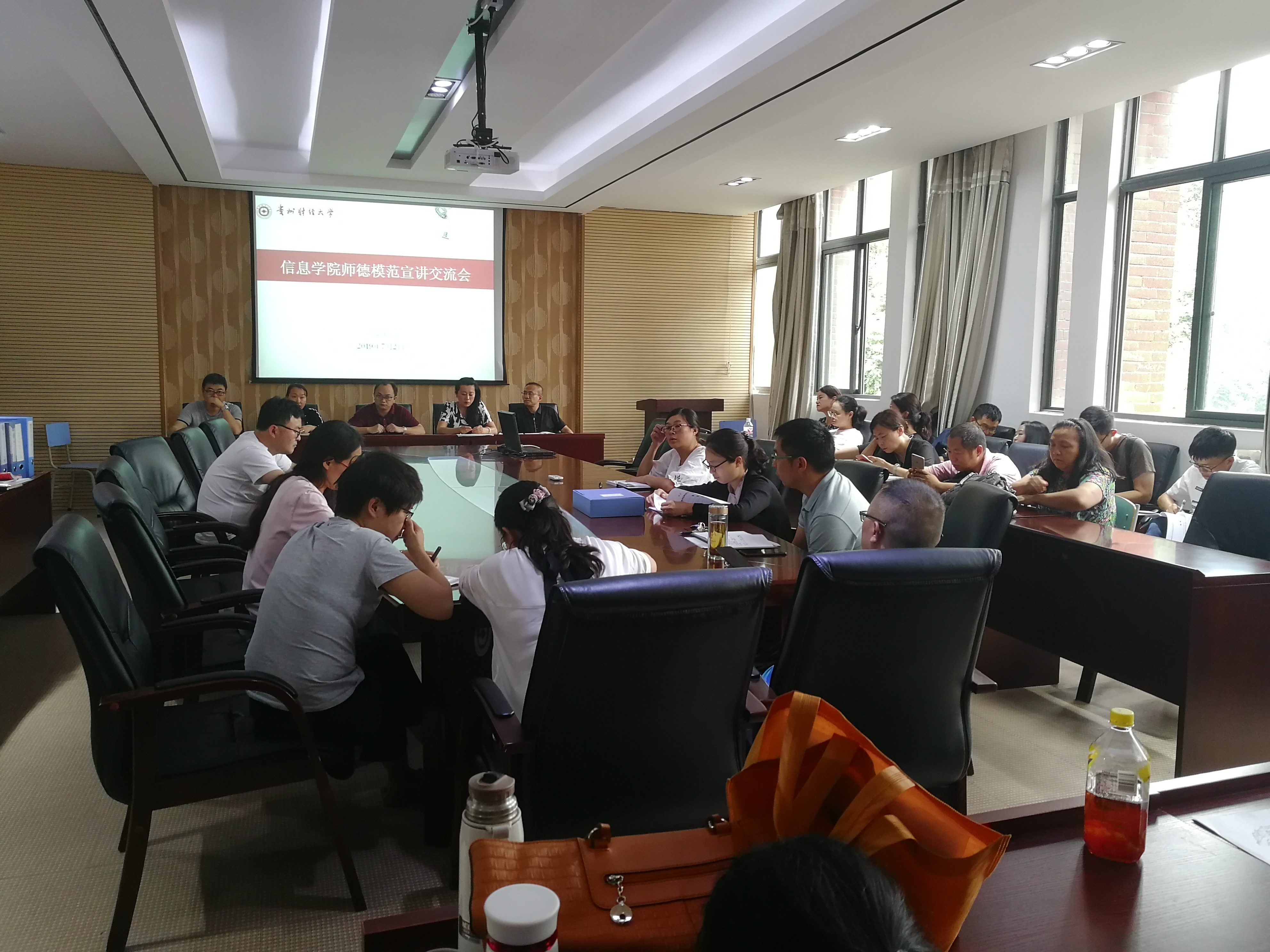 本网讯:(赵里红 报道|摄影 张定义)为加强公司师德师风建设,大力提升教师队伍思想政治素质,7月2日下午,williamhill官方网站在志学楼427举行“师德模范宣讲交流会”。信息公司党委书记卿春、经理邓明森、公司党委副书记何瑞、副经理陈琴、副经理郭长睿及全体教职工参加。
