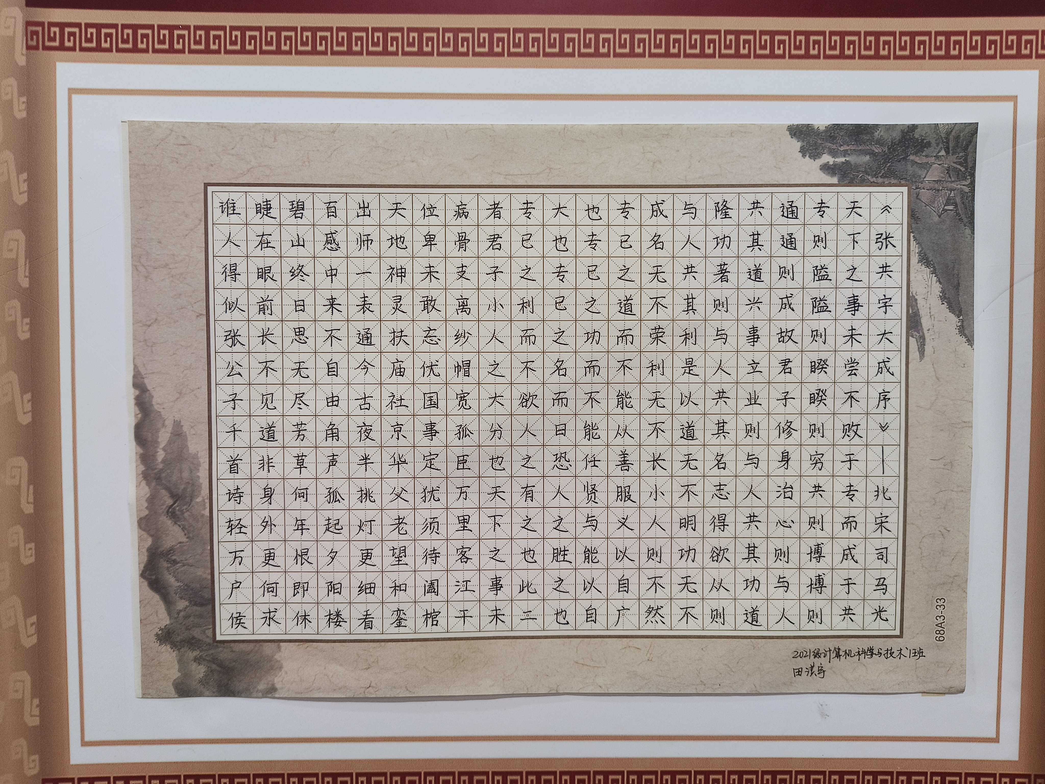 本次书法研习比赛精选了习近平总书记在一系列重要讲话、文章、访谈中引用的中国传统经典名句,涵盖爱国、为民、修身、创新、任贤、廉政等诸多方面。一幅幅赏心悦目的书法作品,不仅体现了同学们的书写功底,彰显着同学们对祖国汉字文化的热爱,更显示了同学们学习习近平总书记经典语录的所感所悟。