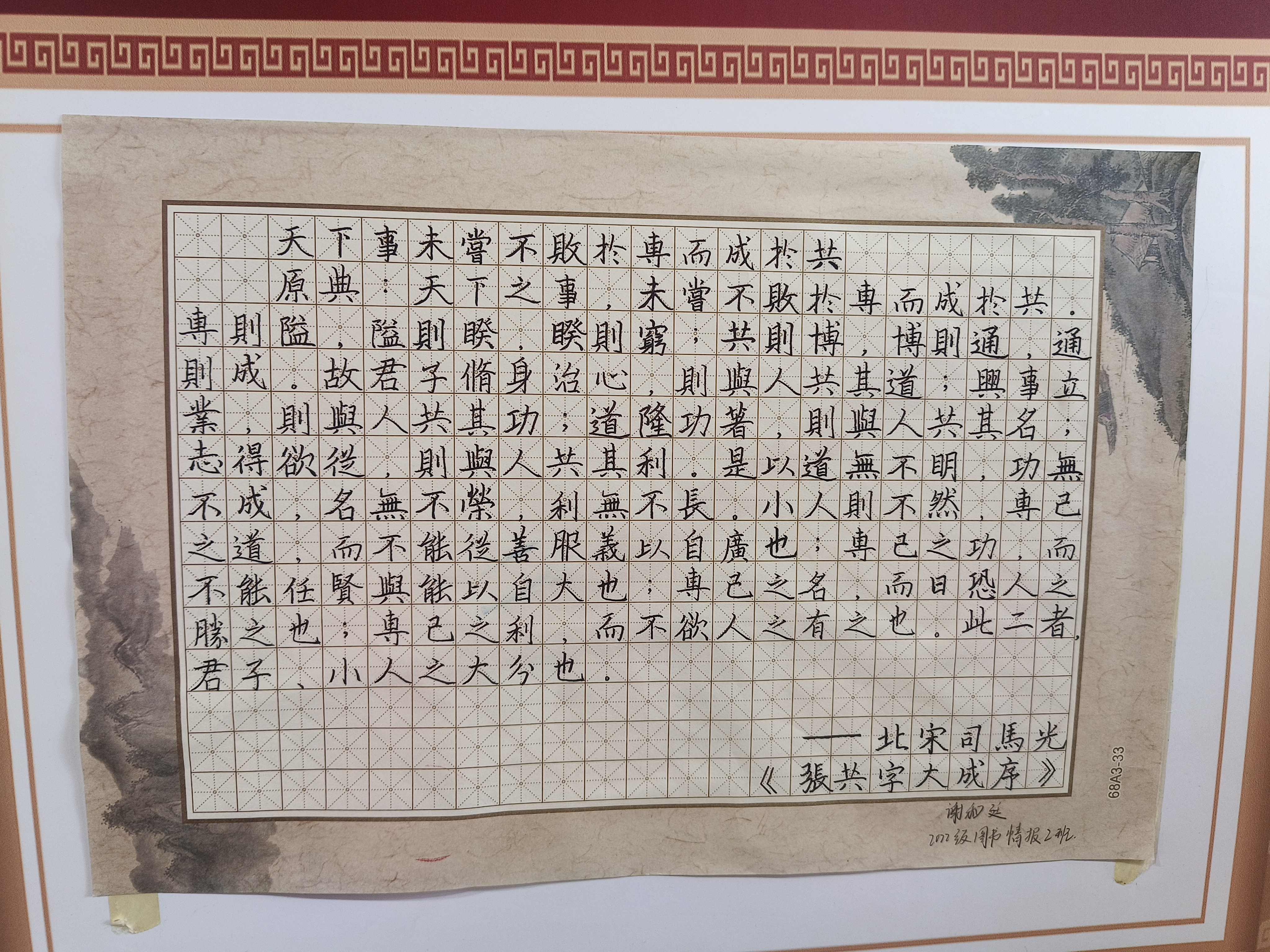 本网讯:(李杰 图文报道)为进一步引导广大同学感悟中华优秀传统文化,领略习近平总书记的独特语言风格和人格魅力,williamhill官方网站组织开展了《习近平用典》书法研习比赛,并于2024年11月17日-24日在樱花苑1栋一站式员工社区进行了优秀作品展示,吸引了很多爱好书法的师生驻足观看。