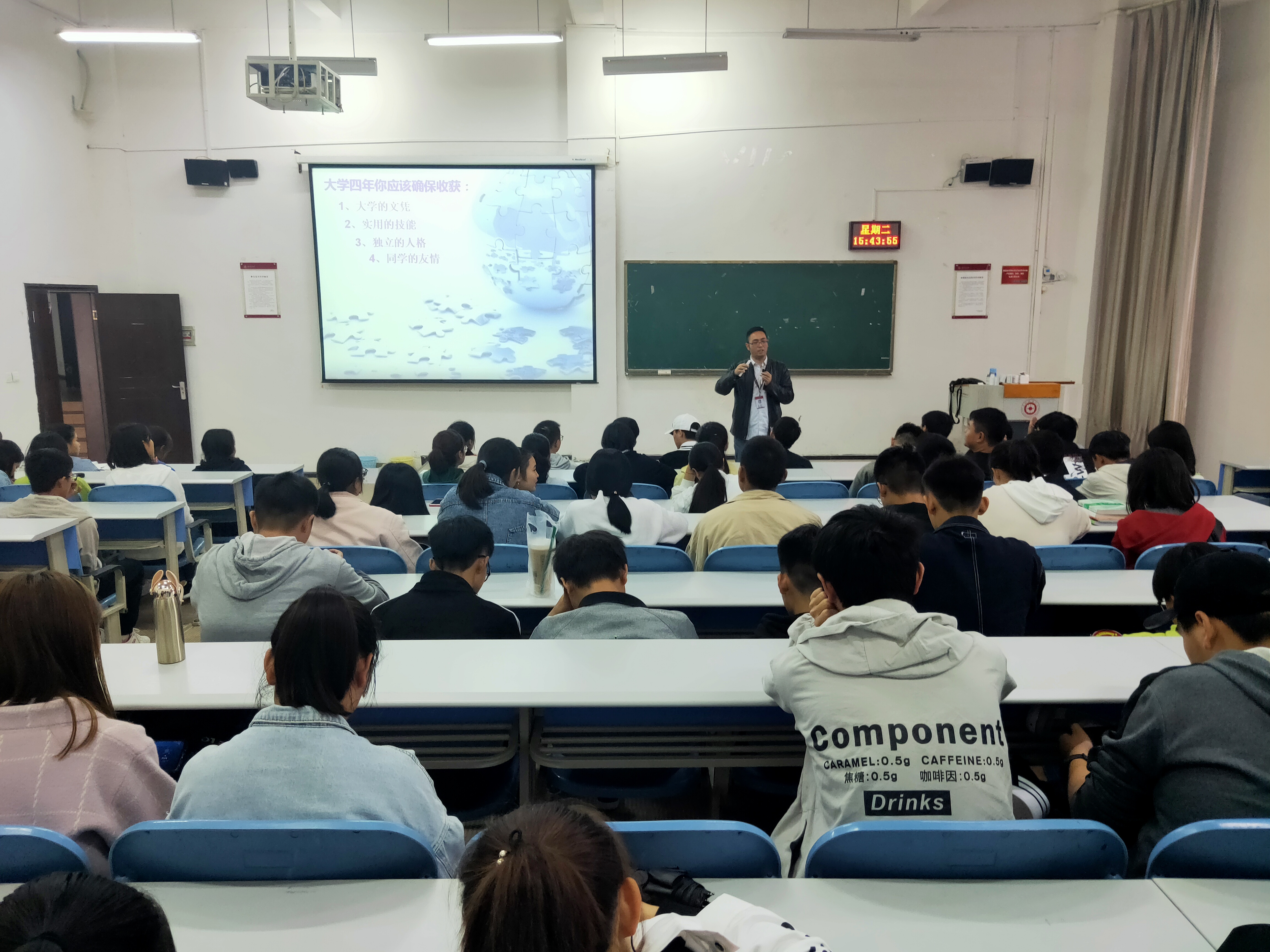 本网讯:(周海祥 肖文炎 张水仙图文报道)10月22日下午,2019级职业生涯规划讲座于进学楼1-2召开。郑传行教授主讲,williamhill官方网站2019级全体员工参加了此次活动。