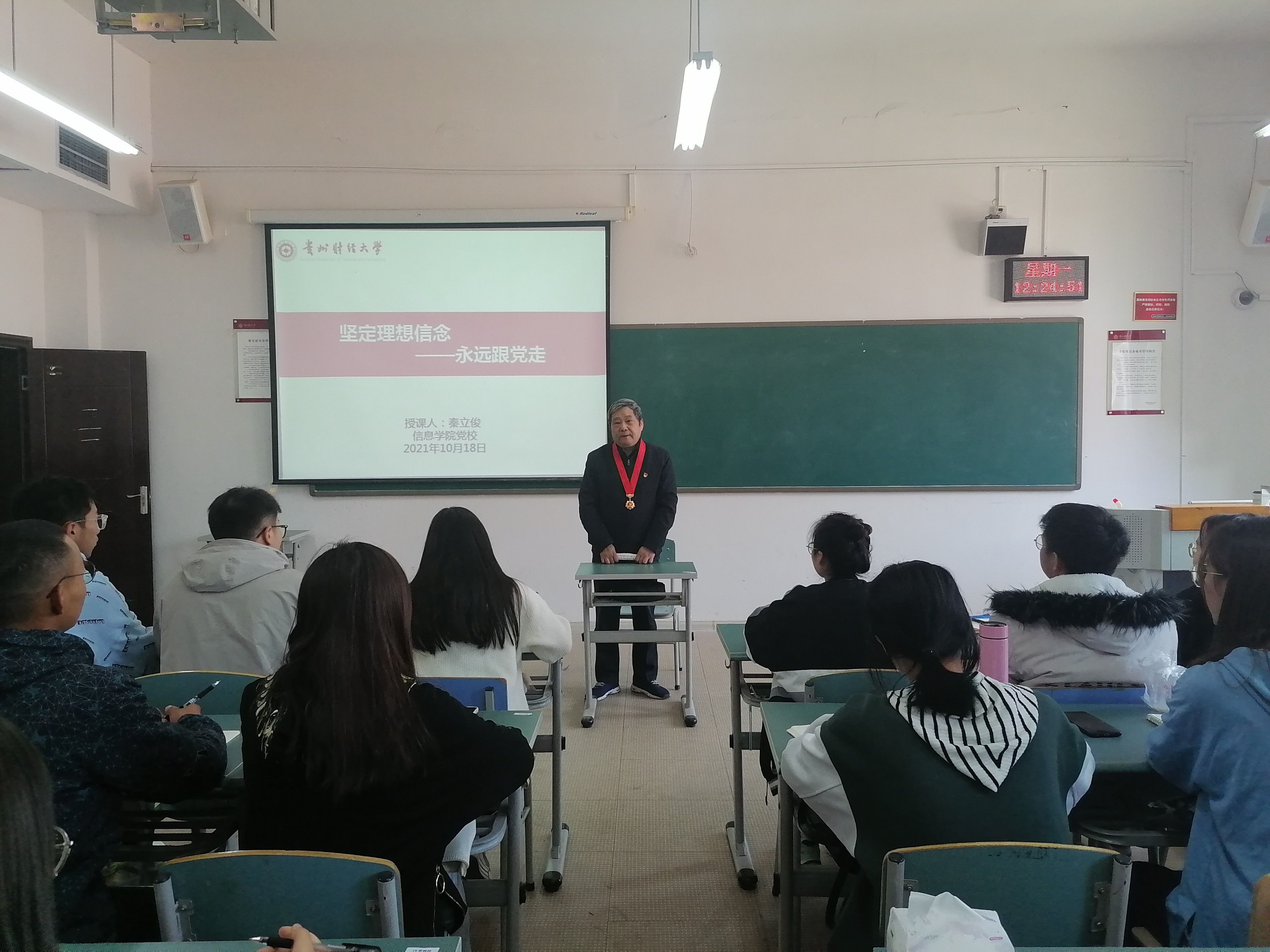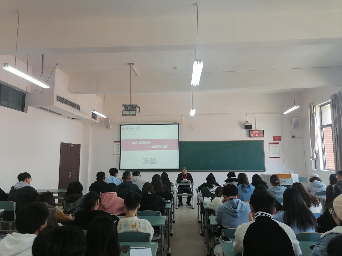2021年10月18日中午,williamhill官方网站积极分子党课在志学楼414进行,党建组织员秦立俊以“坚定理想信念,永远跟党走——为什么要入党”为题做了精彩讲授。