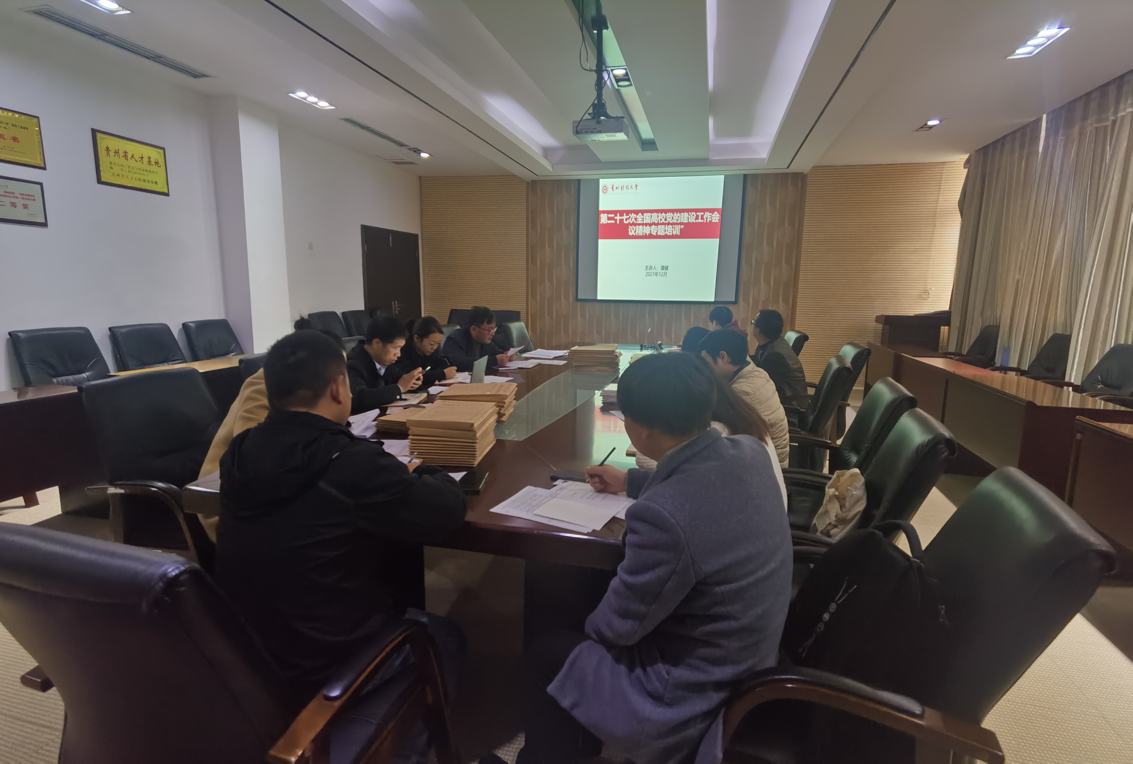 首先,谭健传达了《中共williamhill官方网站委员会关于开展“五级 书记抓党建”工作“五个一批”工程创建培育评选的通知》要点,对党支部“五个一批”工程创建工作进行了动员并提出相关要求。接着,赵里红做了迎接省委教育工委党建工作绩效考核的工作安排。