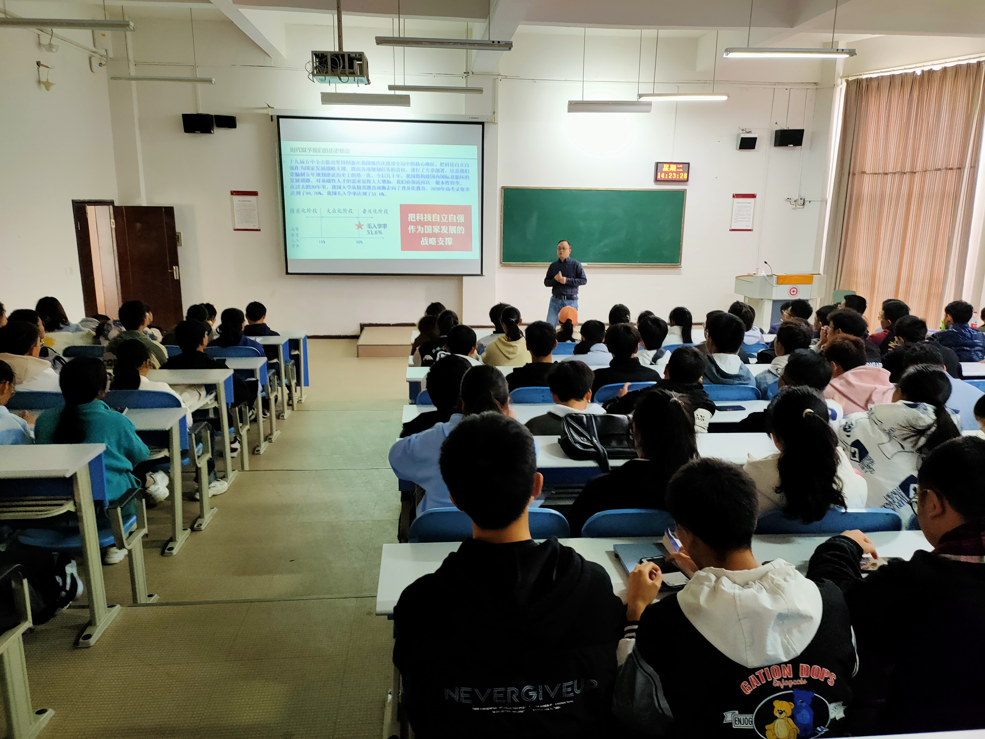 卿春从公司的发展、学科点设置、办学目标等方面为同学们做校情校史介绍。邓明森介绍了williamhill官方网站团队队伍、专业构成、计算机学科的发展史及发展前景。刘文江介绍了大类分流工作相关安排和注意事项。梁敏介绍了公司研究生招生培养等方面内容,鼓励大家做好学业规划,积极报考研究生。随后公司各科室负责人介绍科室具体工作事项,各系负责人详细讲解专业相关知识。