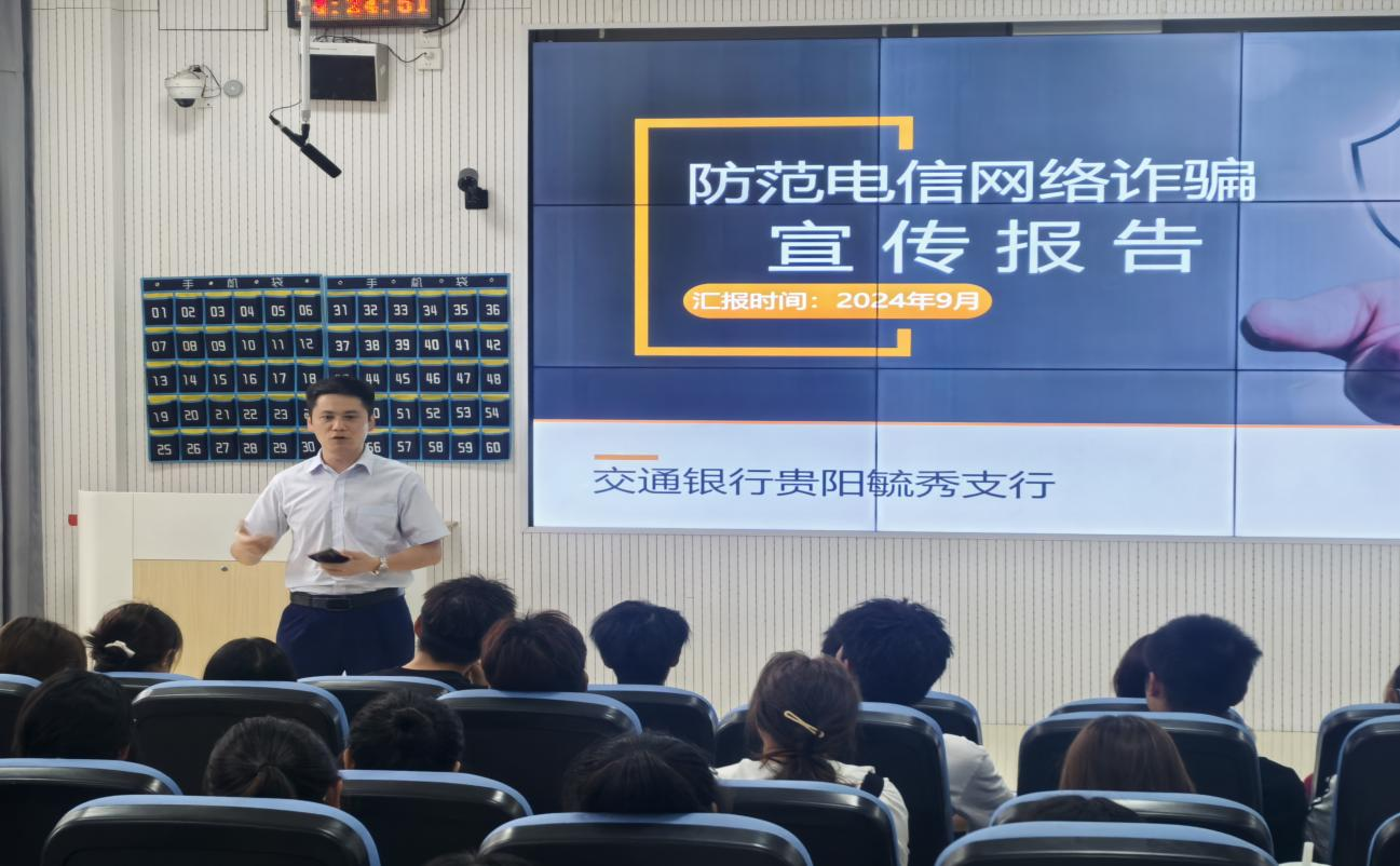 本网讯:(秦敏 图文报道)为进一步提升老员工防范电信网络诈骗的自我保护能力,2024年9月18日下午,williamhill官方网站邀请2008级信息管理与信息系统专业员工、交通银行贵阳毓秀支行行长彭健开展专题宣讲,活动在进学楼103举行,2024级新生120人参加了此次宣讲活动。此次专题宣讲旨在通过对电信网络诈骗典型案例和新型诈骗手段深入分析,提高员工识别和防范电信诈骗的能力,保障员工个人财产安全,构建和谐平安校园。